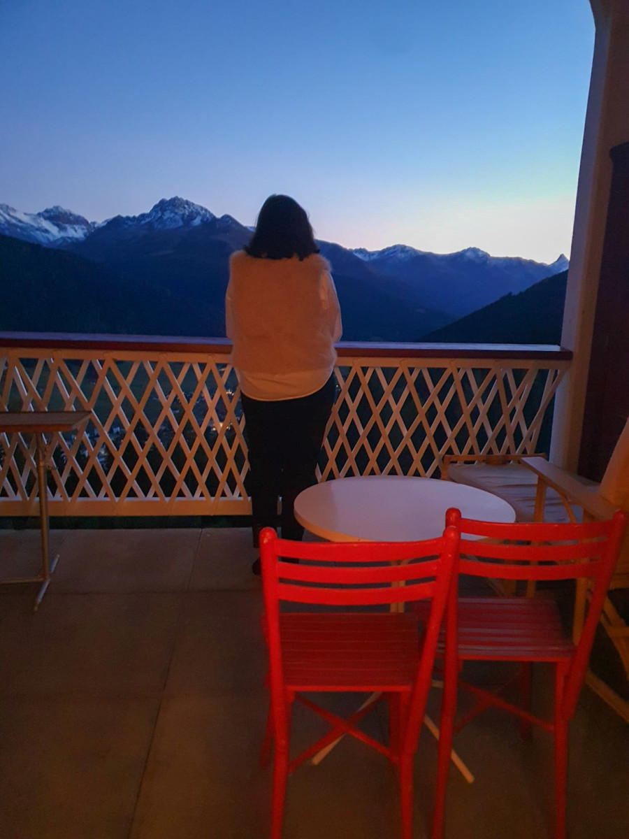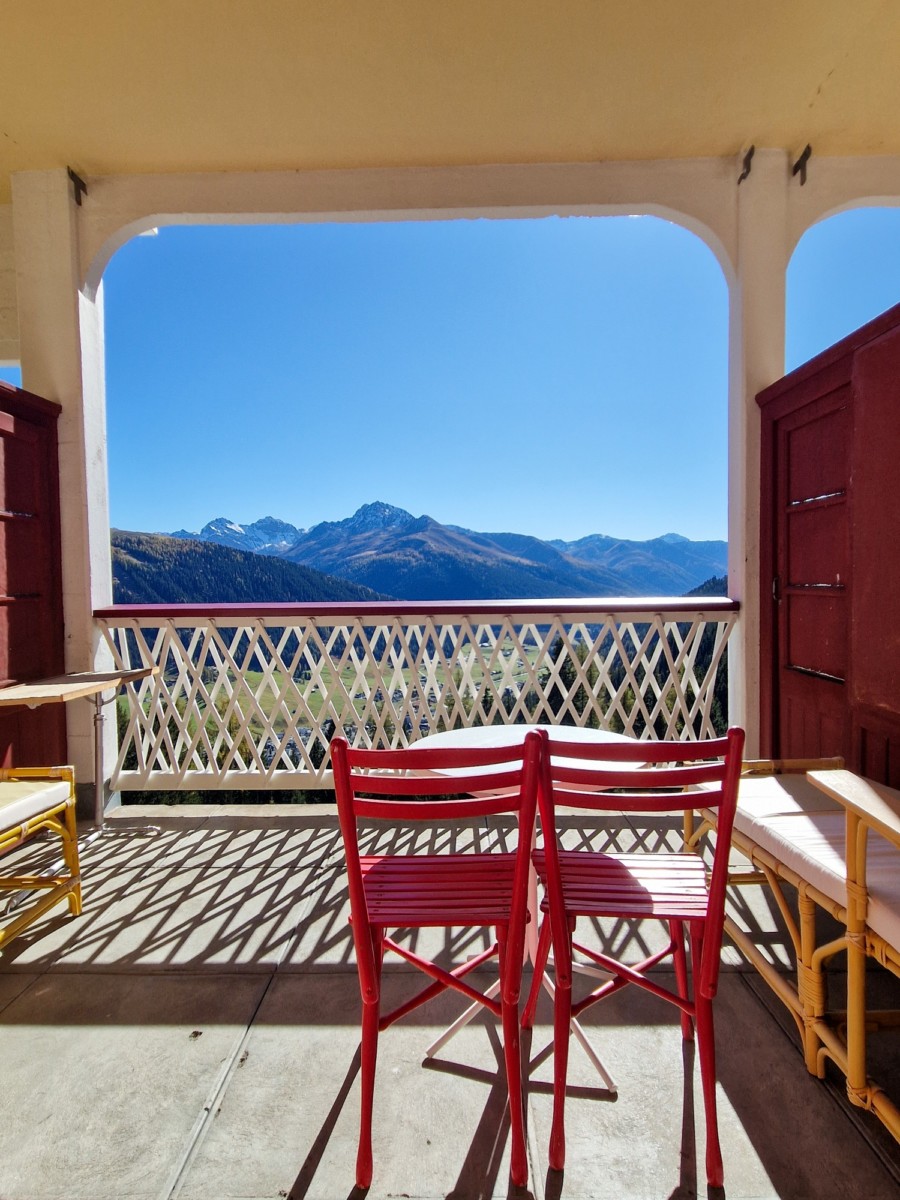 Für mich war unser Wochenende auf der Schatzalp ein wohltuender Break vom Alltag – ein Eintauchen in Geschichte, Natur und warme Herbstfarben. Und natürlich auch ein kleiner literarischer Ausflug in die Welt von Thomas Mann. Mit wenig Gepäck sind wir am Samstagnachmittag mit der Schatzalpbahn zum Hotel gefahren und konnten gleich einchecken. Das Zimmer mit Sicht auf Davos und die Berge ist einfach eingerichtet, funktional und man erfreut sich über das rustikale Badezimmer. Der Balkon lädt zum Verweilen ein und zum Geniessen der Aussicht. Von der man einfach nicht genug bekommt.